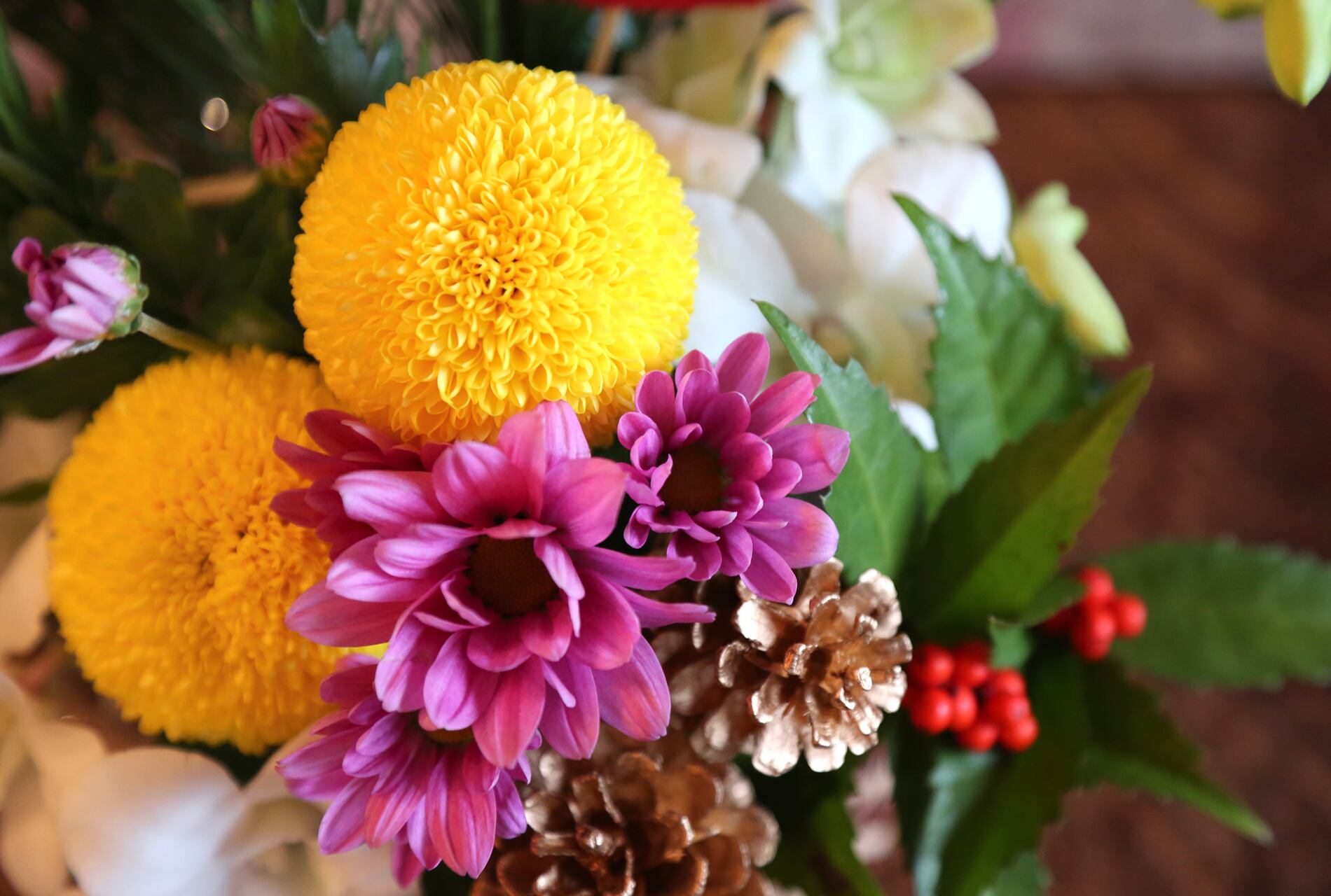 若松、ピンポンマム、スプレーマム、デンファレ 他