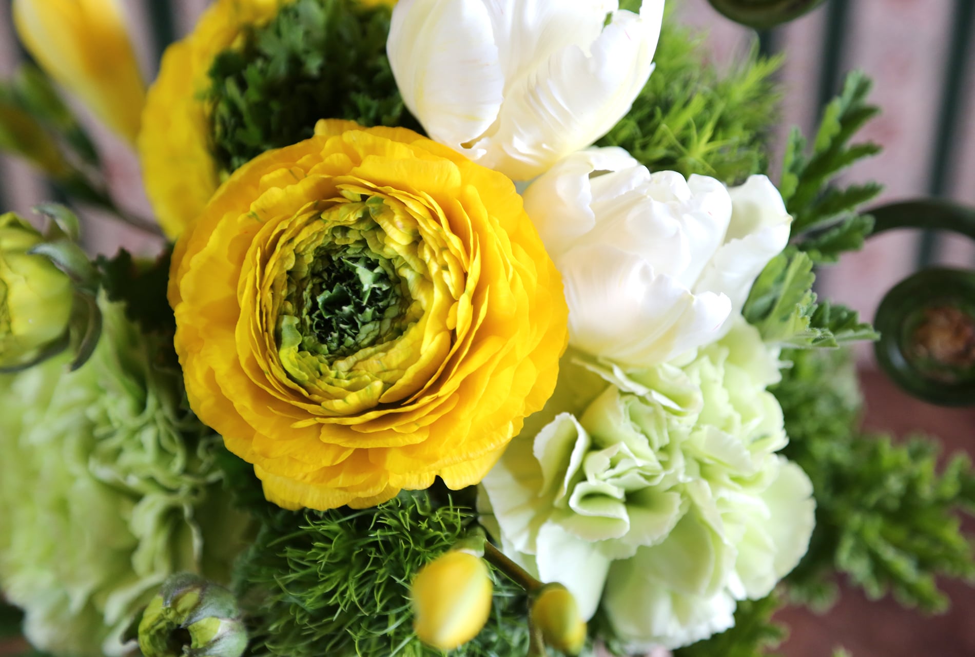 明るいイエローのラナンキュラスは周りを明るくするビタミンカラー。
